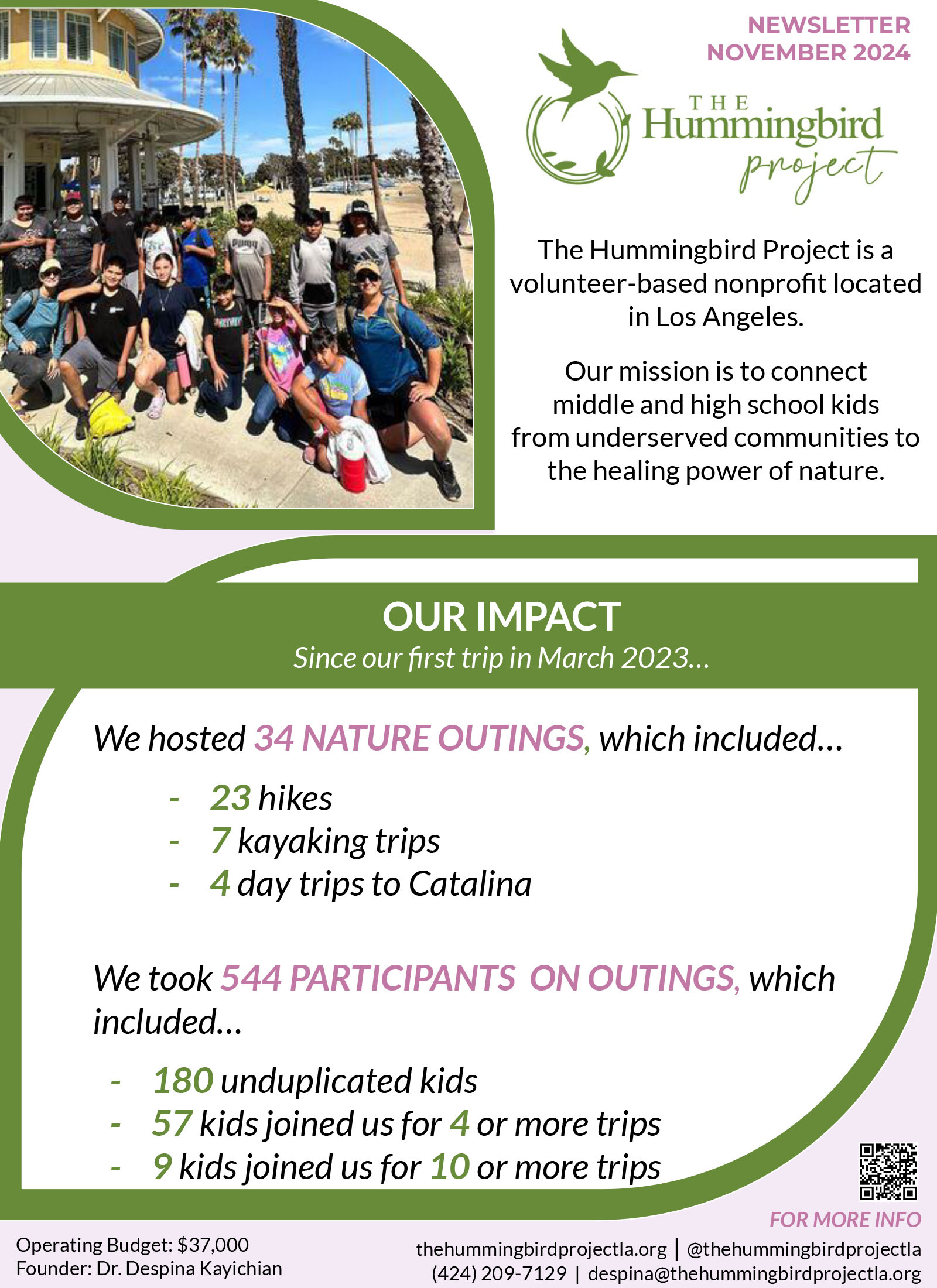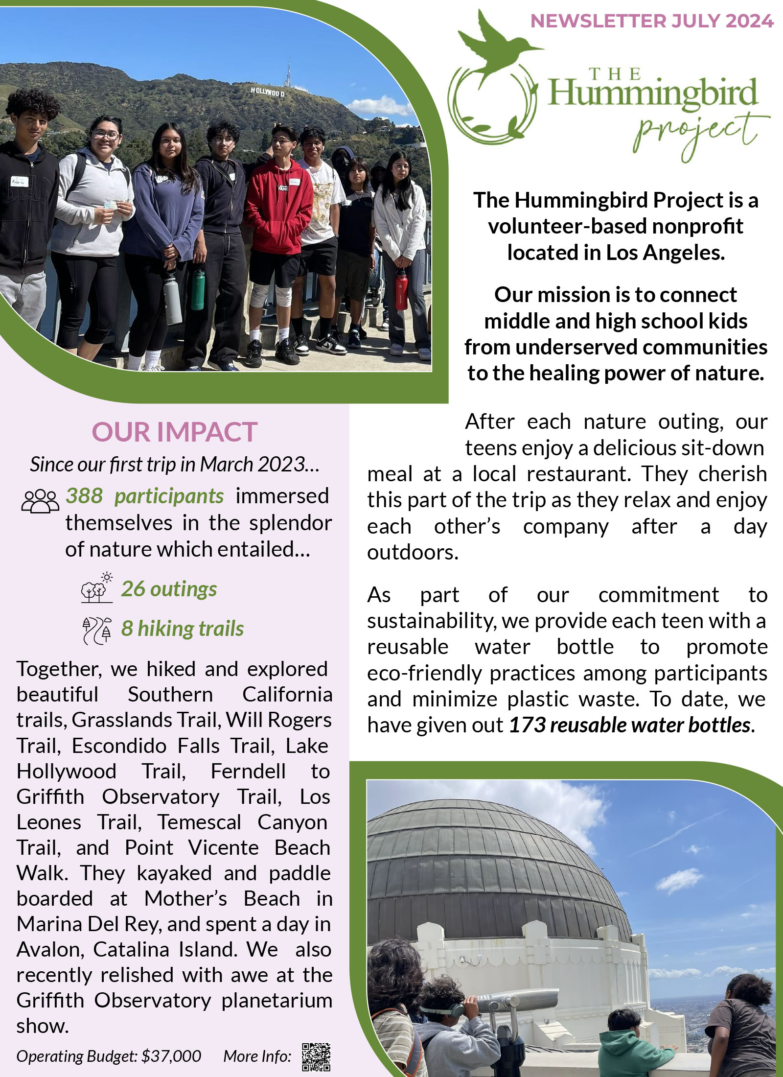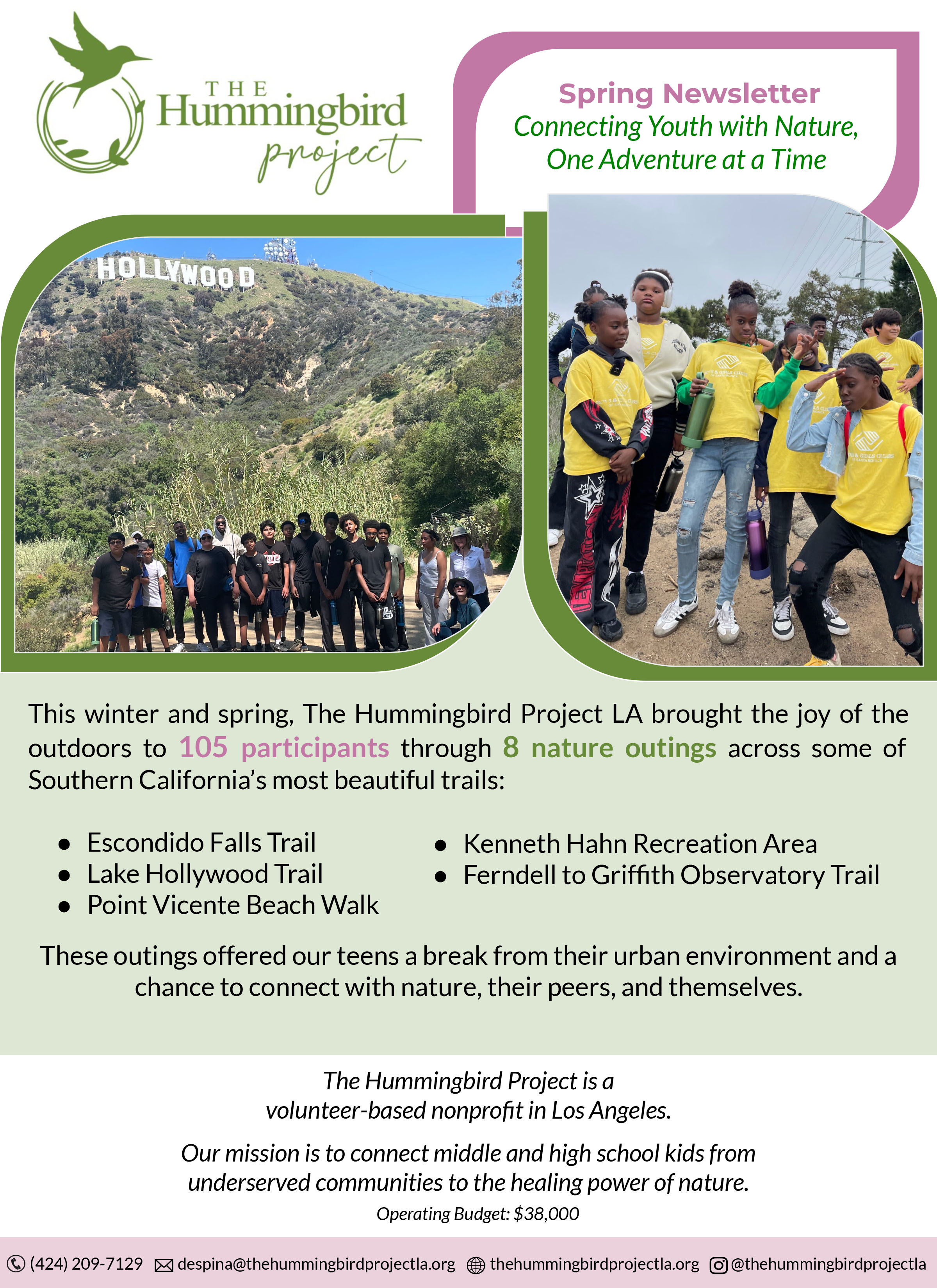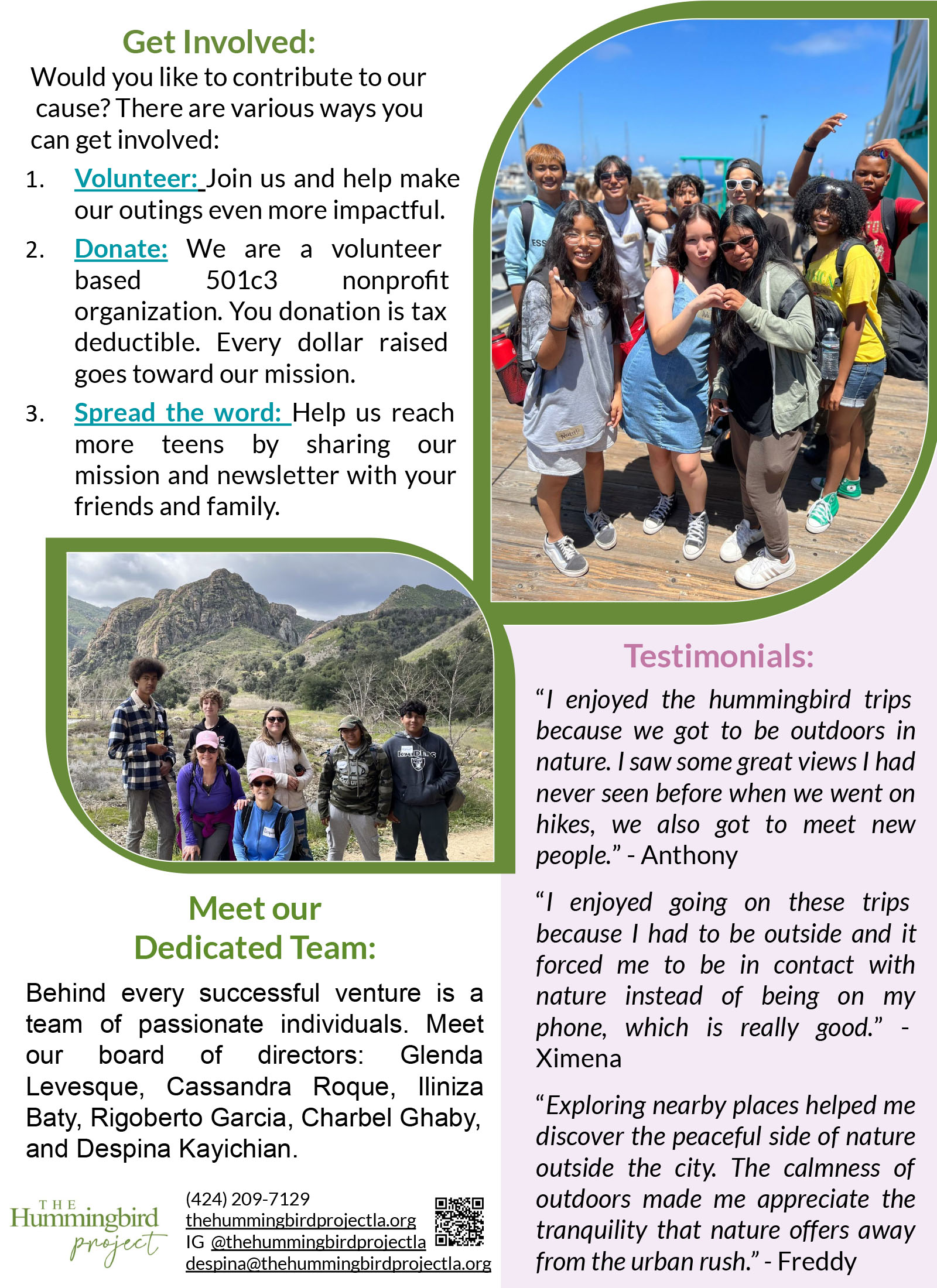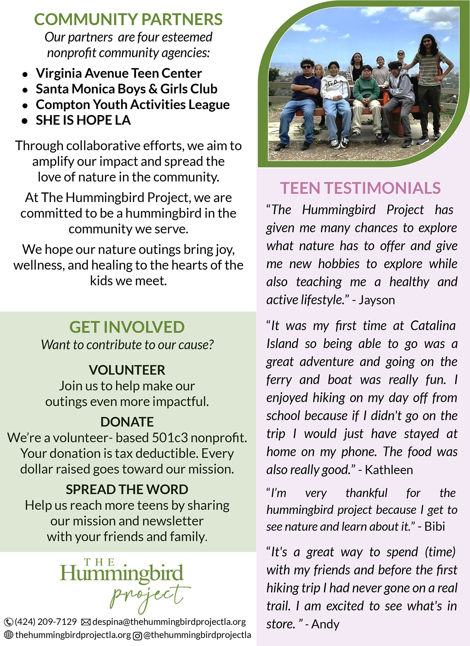 In July 2025, The Hummingbird Project was honored to provide a scholarship to Bryan, a graduating senior at the Virginia Avenue Park Teen Center, as part of the Next Steps Scholarship Program. This meaningful program supports a select group of highly engaged seniors each year as they transition into their post–high school journeys. The Hummingbird Project is proud to have sponsored one senior annually for the past two years.